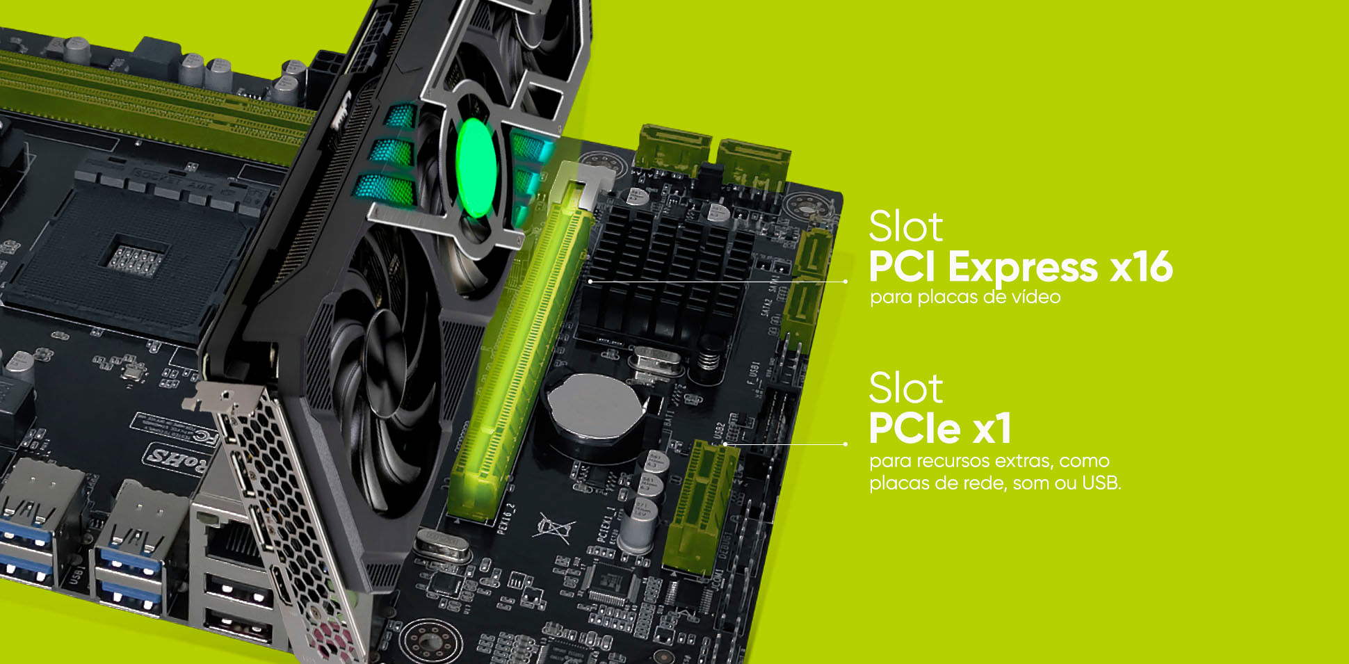 Com slot PCI Express x16 para placas de vídeo e slot PCIe x1 para recursos extras, como placas de rede, som ou USB, você tem flexibilidade para personalizar seu setup de acordo com sua necessidade.