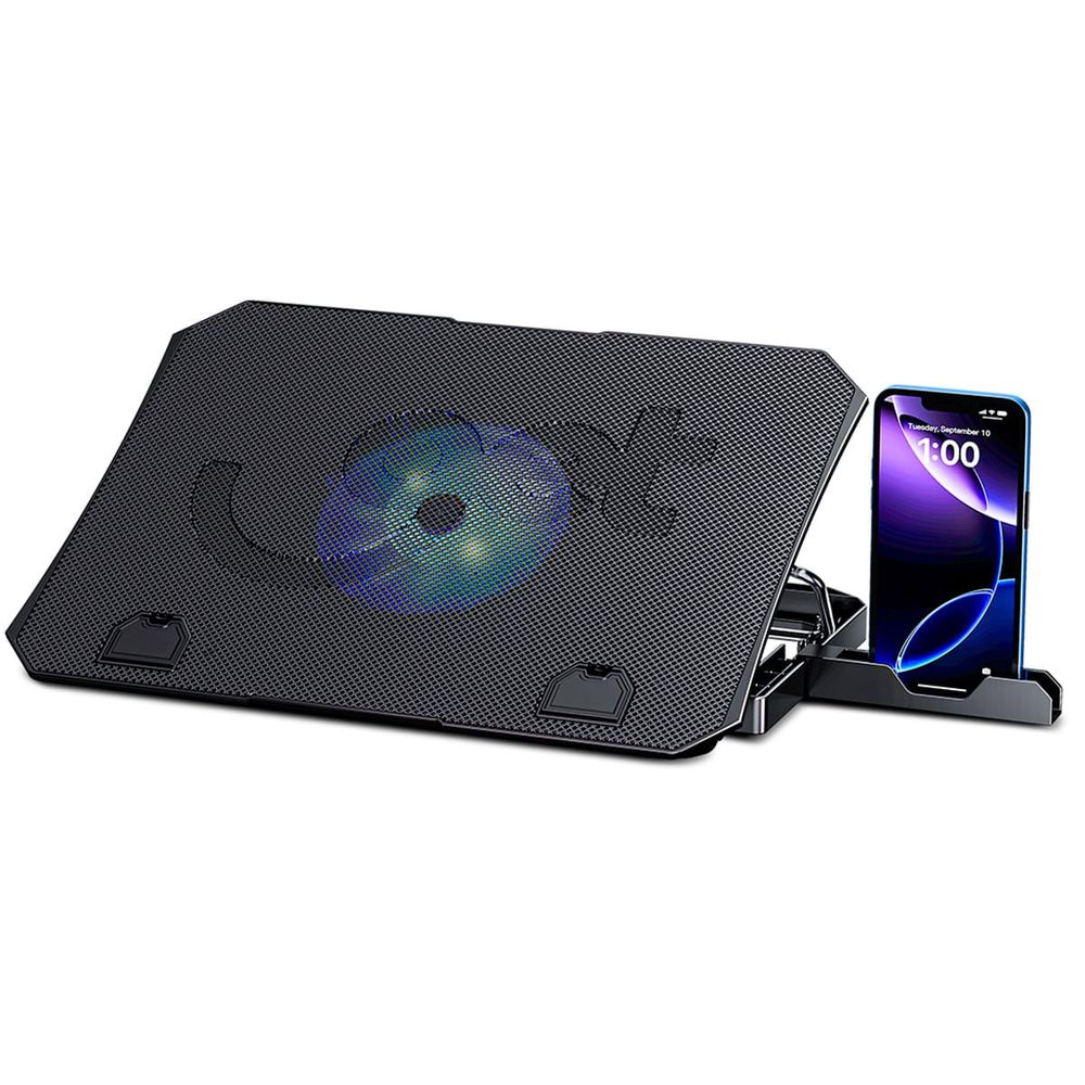 Equipado com uma base ventilada e um potente cooler de 15mm, este suporte garante um fluxo de ar constante que dissipa o calor, prevenindo o superaquecimento do seu notebook. Isso não só prolonga a vida útil dos componentes internos, mas também otimiza o desempenho, evitando lentidão e travamentos.
